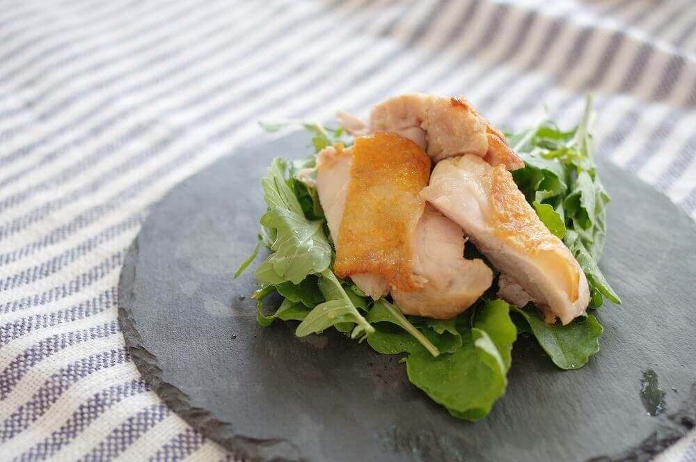 先ほどのチキンを、覚さんおすすめのハーブであるルッコラと一緒に食べてみました。ルッコラは発芽しやすいからどんどん育ってくれるうえに、お肉と一緒に食べるとルッコラのゴマのような香りがきいて美味しい!ゆでたり炒めたり何にでも使える、使いやすさNo.1のハーブだそうです。