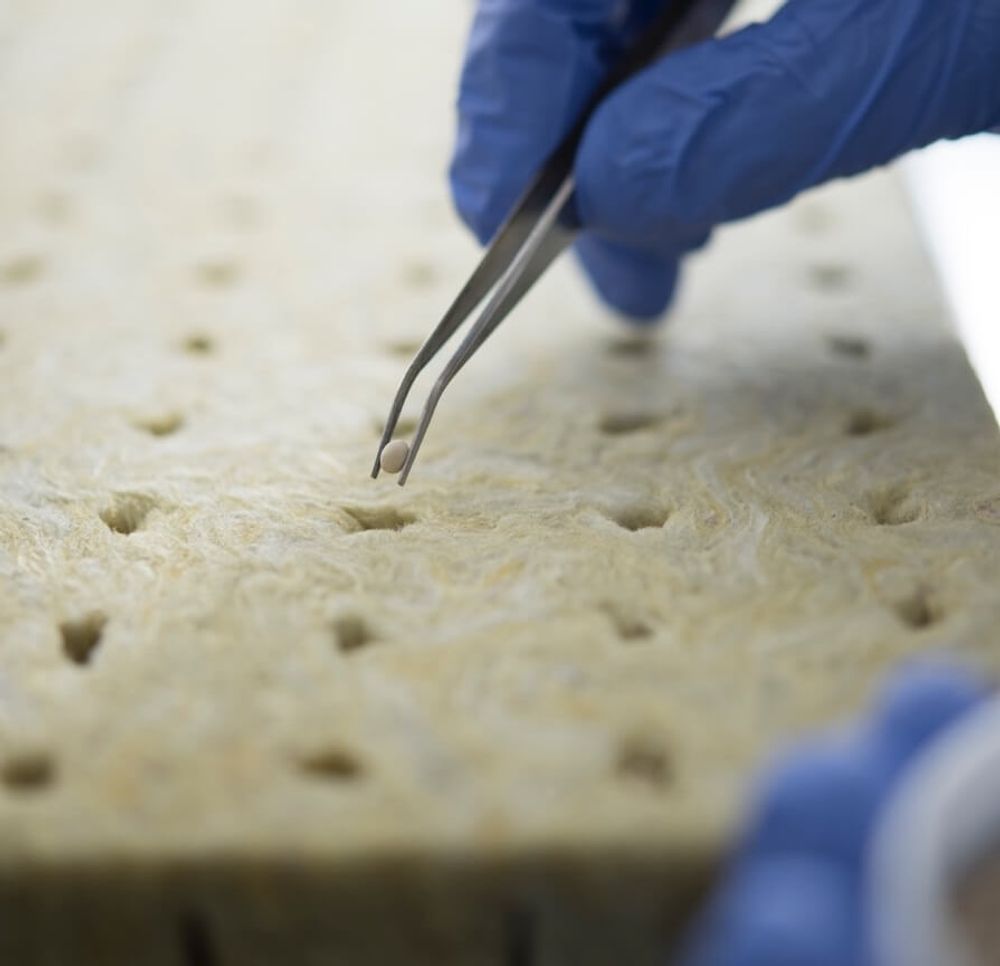 まずは、世界中から集めた研究を重ねた種のみを扱い光の当たらない暗室にて発芽をさせます。