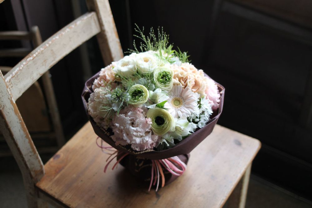 ?フリルの花弁の花を使ったフェミニンなそのまま飾れる不思議な花束「マジカルブーケ」が一番得意で好きですね。