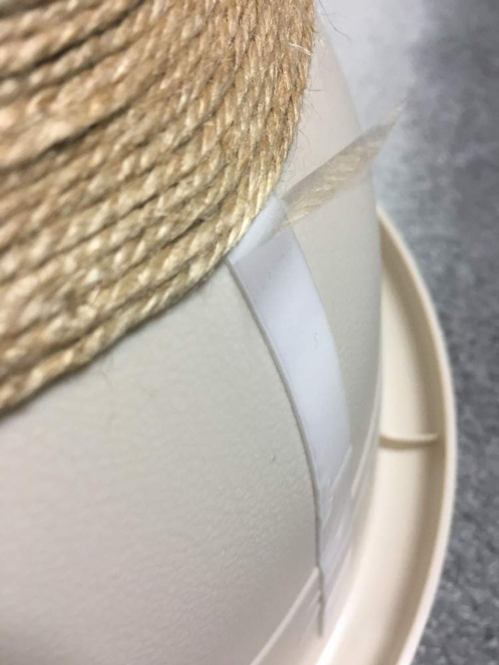 3M両面テープを鉢に放射線状に貼り、麻ヒモをぐるぐる巻いていきます〜☆
