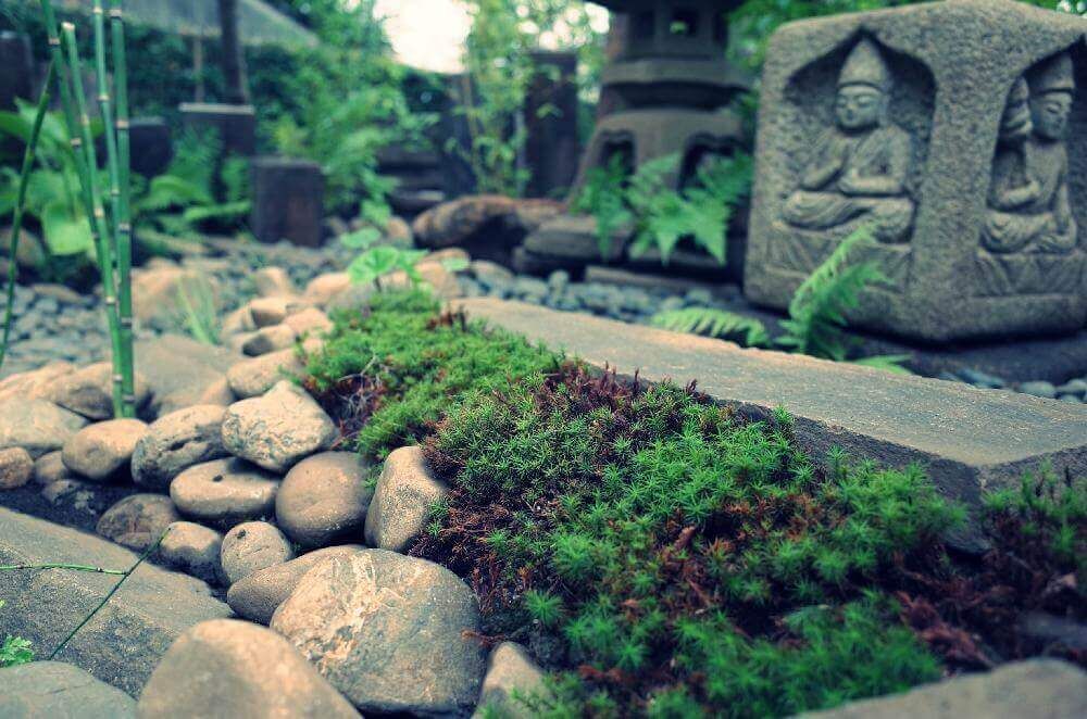 和風の庭に欠かせないのがコケです。日本のジメジメとした気候でのびのびと生えるコケは、和風の庭の風情を増してくれます。着生植物なので、岩に乗せるだけ増えていきます。