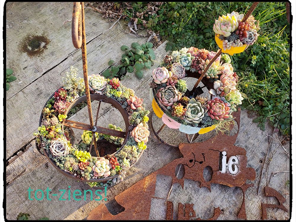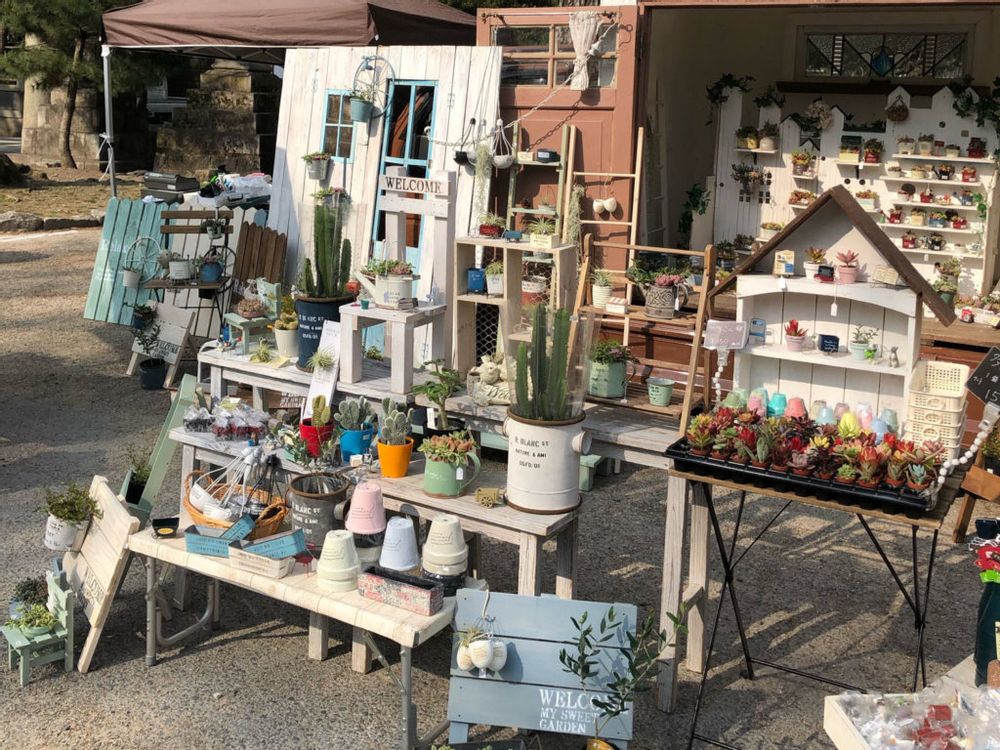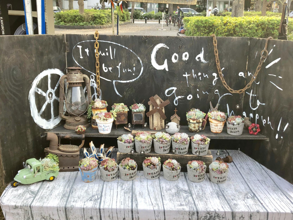 多肉植物やサボテン、寄せ植え、錆びた鉄や古木を使ったオリジナルの器や雑貨、鉄文字看板などの販売を予定しています☆