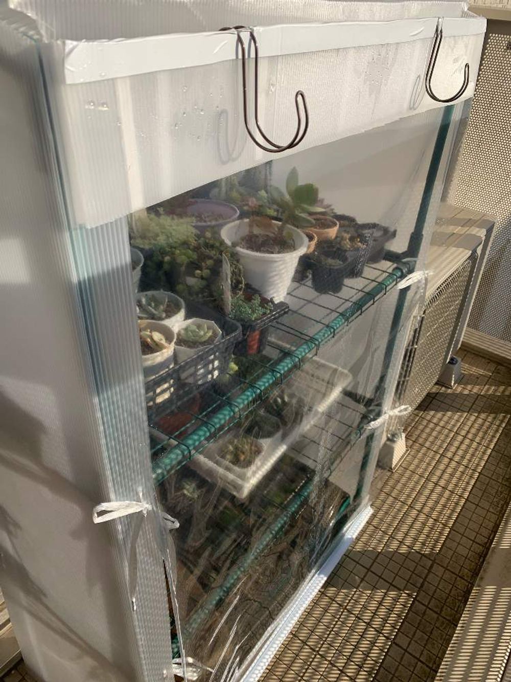市販の簡易温室に付いていたビニール製のカバーが破れたので、HCと100均で…