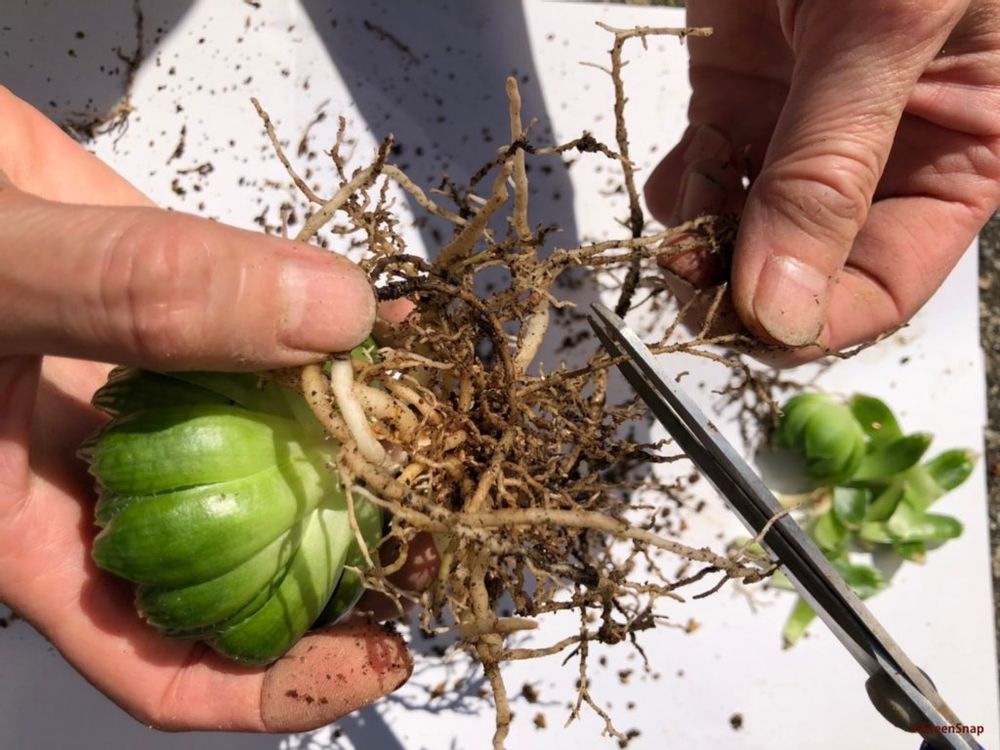 植え替え後は半日陰で管理し、1週間程経ってから水やりを開始します。1か月半くらい経つと、株が一回り大きく成長するので、明るく風通しの良い場所に置いて、これまで通りの方法で管理しましょう。