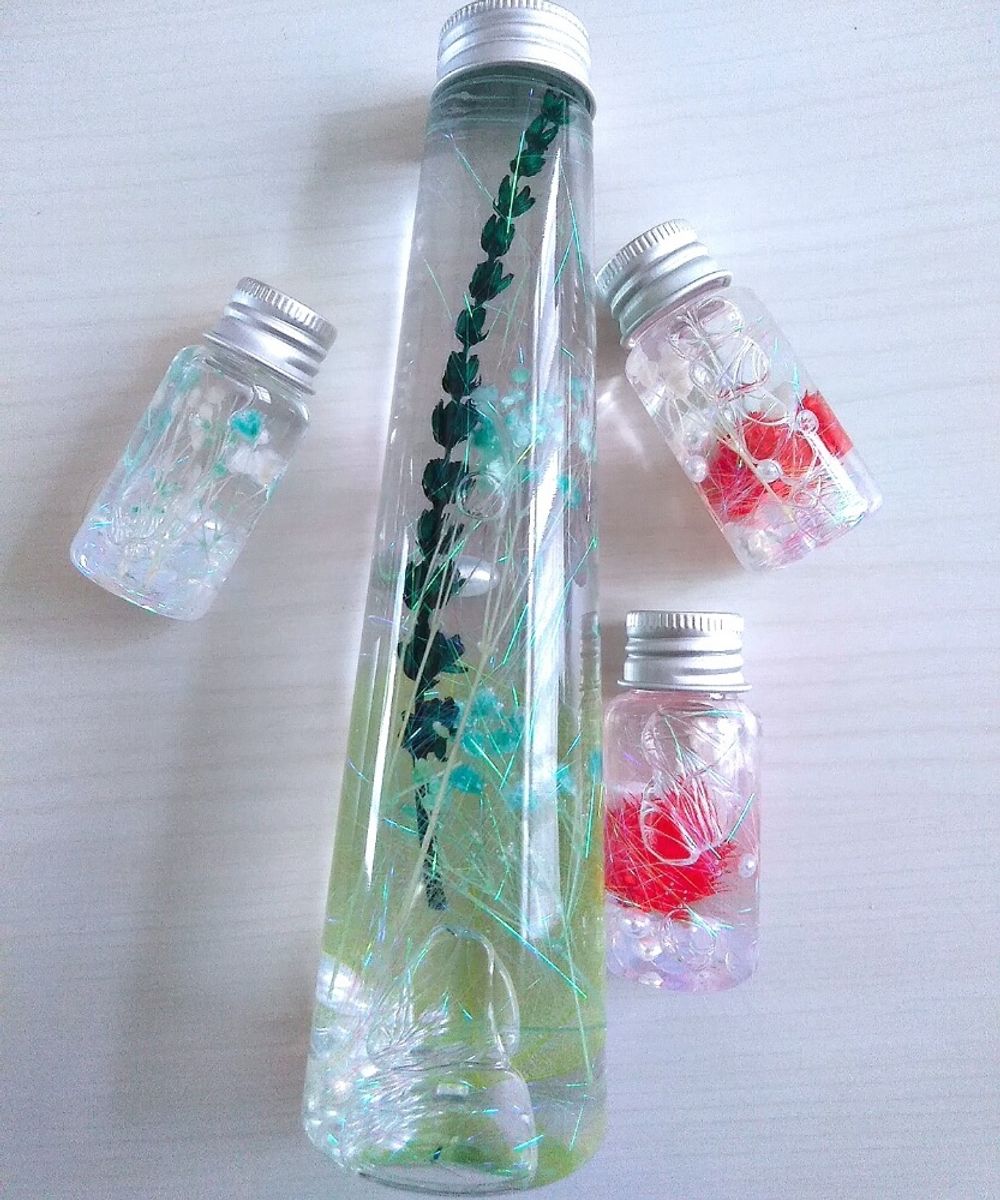 コップ型の空き瓶や、ワインの瓶なども手に入りやすく、おしゃれな容器ですよね。