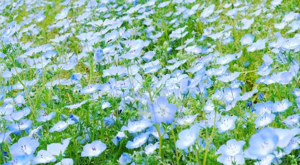 ネモフィラは澄んだ群青色に近い、青い花を咲かせます。葉も花も密集して生い茂るので、満開になると青い絨毯のようでとっても綺麗です。全国各地に名所があるので、見渡す限りのネモフィラ畑に足を運んでみてはいかがでしょうか。