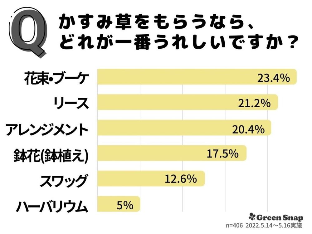 最近ではカスミソウだけ花束やブーケも出回っていますが、GreenSnapユーザーへのアンケートの結果、ものたりないと思う人が約6割いることがわかりました。