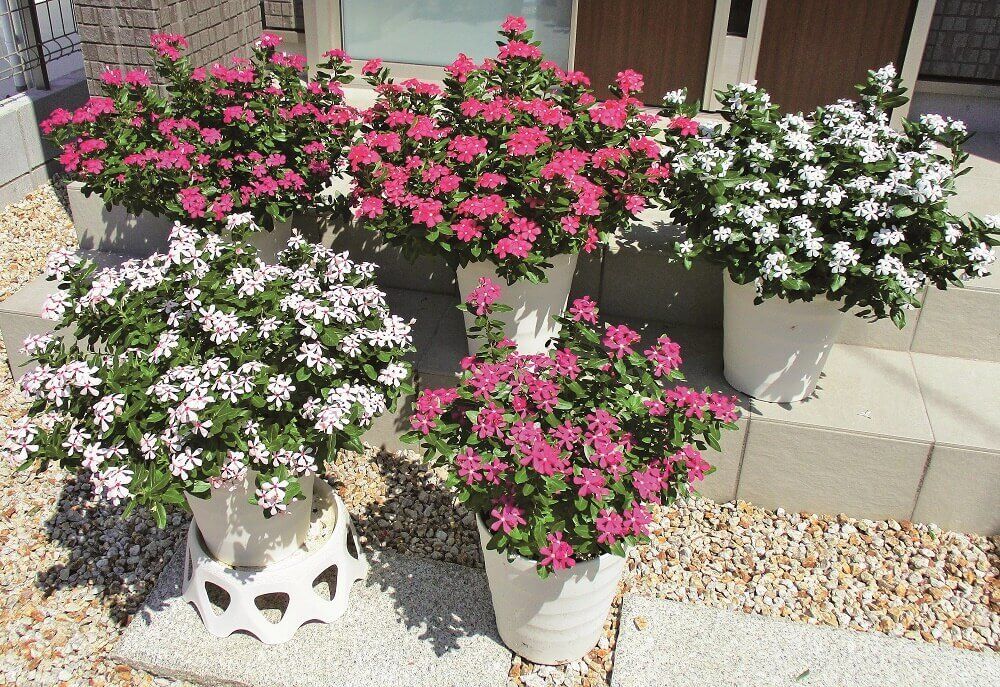 品種は春から晩秋まで長く楽しめるペチュニア、真夏の暑さにとても強いビンカ、直射日光下でも、日陰でもどちらでも鮮やかな花を咲かせるインパチェンスの3品種。