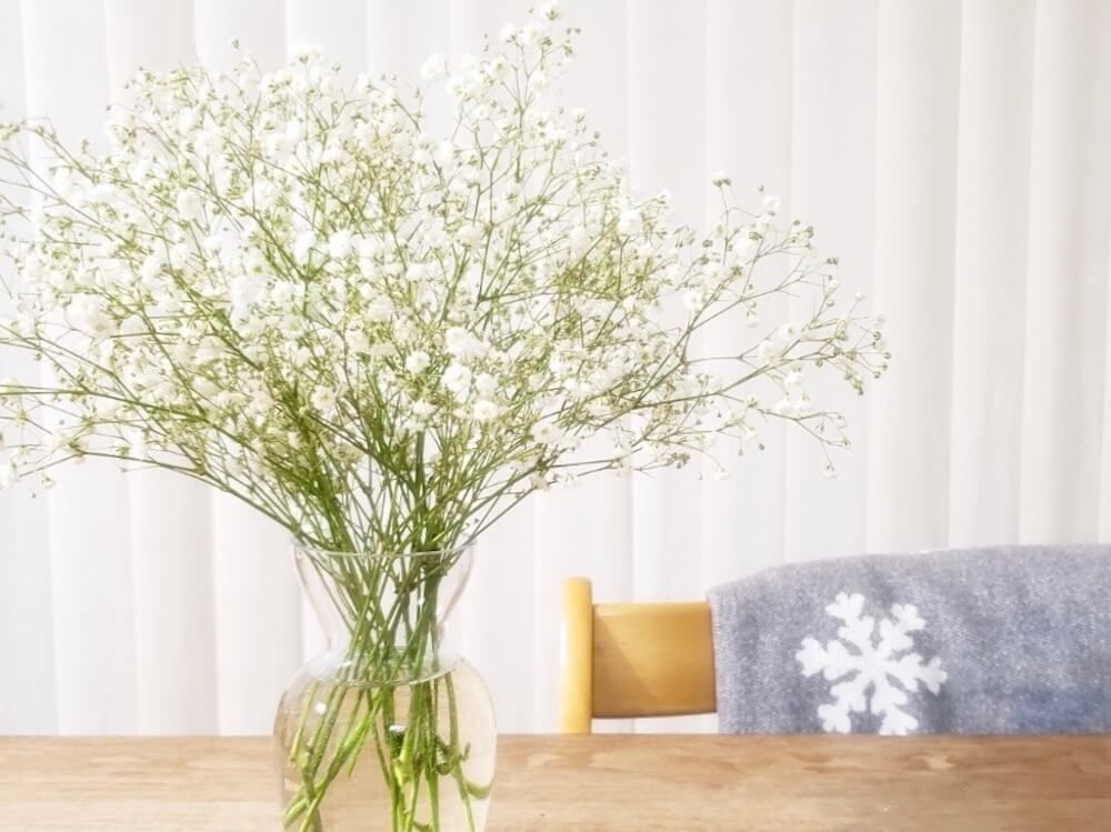 かすみ草は細い茎に細かい白い花をたくさんつけた姿が、なんとも繊細で美しいですよね。花壇やプランターに植えて楽しむもよし、切り花でアレンジに使うのもよしのお花です。その姿が主張しすぎないので、寄せ植えや、アレンジで組み合わせるお花を引き立ててくれますよ。