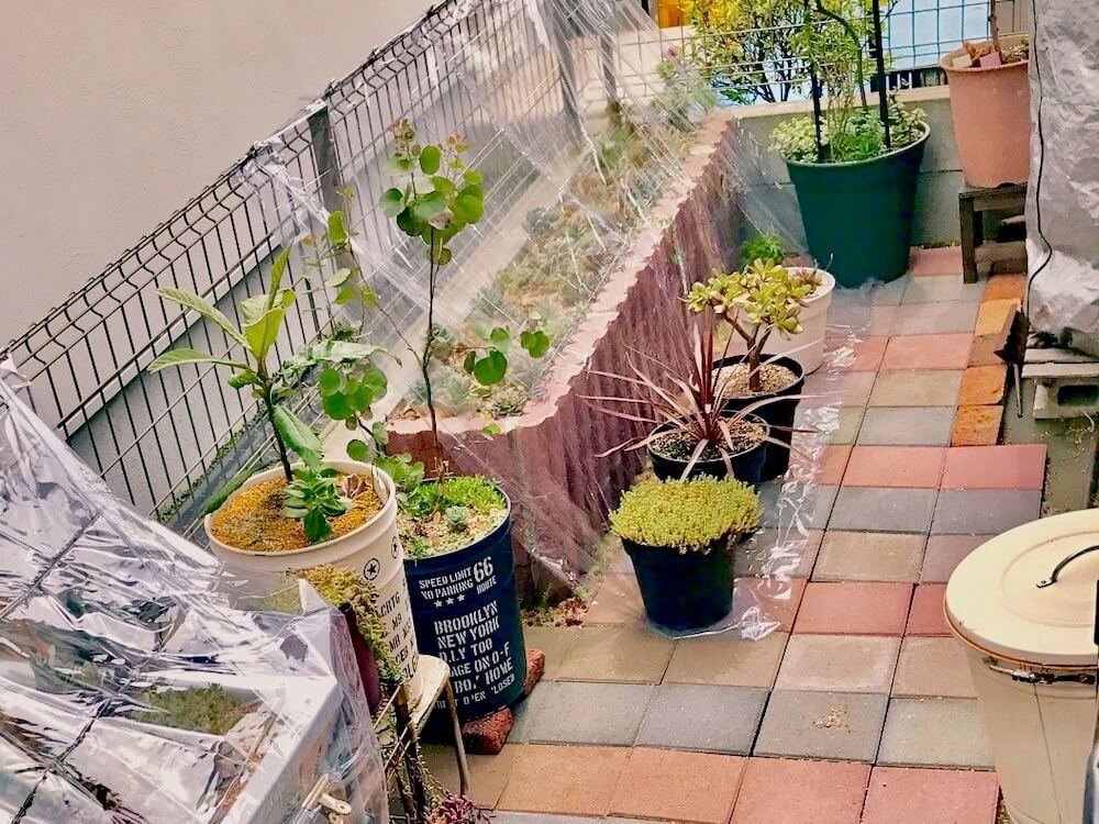 最近では100円ショップのアーチ支柱、ビニールを使って簡単に雨よけを作ることができます。他にも、オーニングという、雨よけにも直射日光よけにもなるサンシェードなども数千円で入手できるので試してみてはいかがでしょうか。