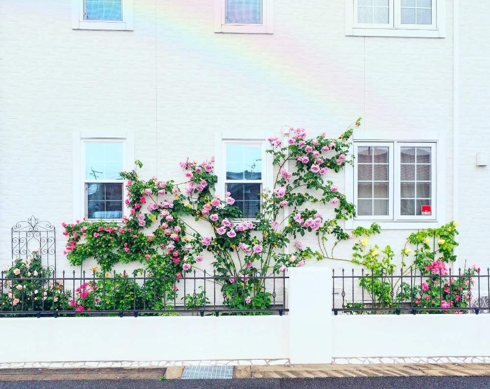 家の西側って西日が当たるので、植物にとっても厳しく殺風景になりがちですよね。そこをなんとかしようと、いがっちさんは2018年の3月に花壇づくりからスタート。つるバラにも挑戦したようで、後半からのつるバラの成長ぶりは圧巻です。
