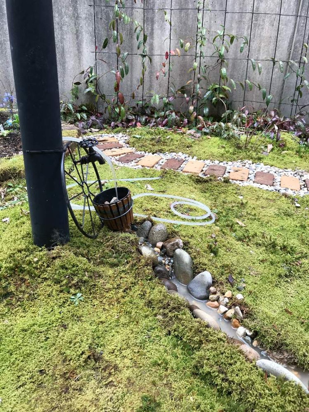 花壇の下から水が湧く水はけの悪い庭(*´Д`*)水はけをよくしたい!ついでに見た目もかわいくしたい!!そんなこんなで、小道とビオトープが合体…