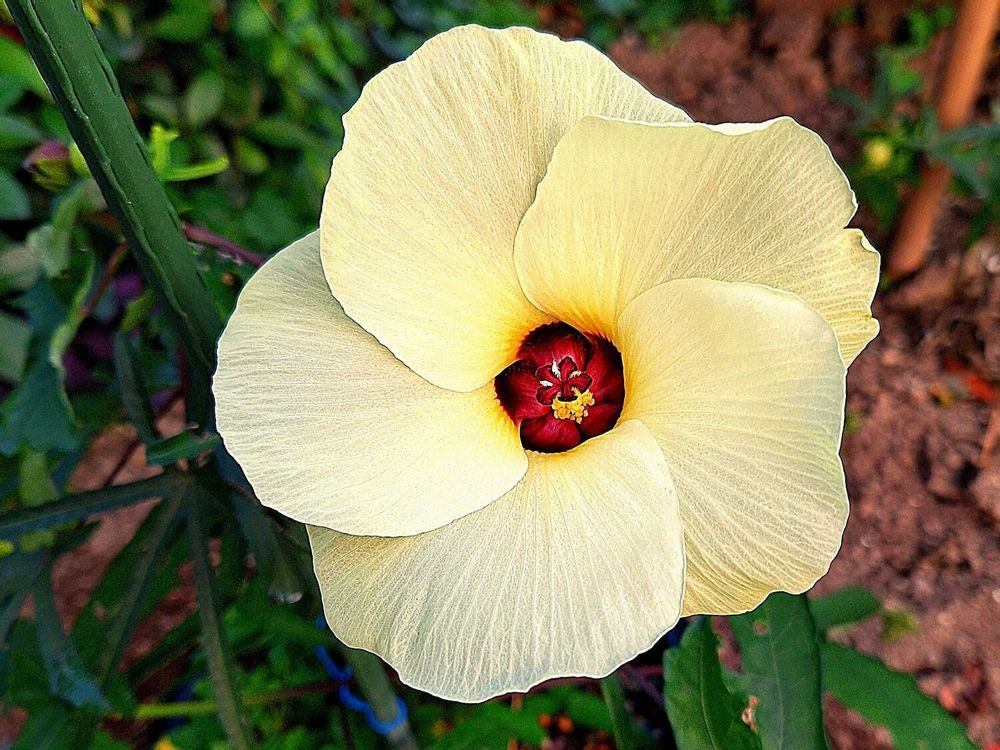 紅オクラと花オクラが購買して誕生した品種です。花だけでなく、実もオクラの様に食べることが出来ます。