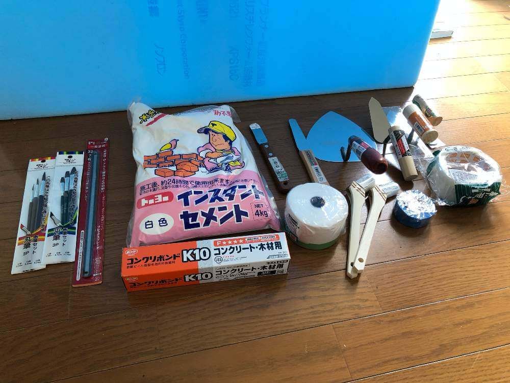 ちょっとめんどくさそう…という方には、とっても便利なインスタントセメントというものが100均に売っているので、そこに水を混ぜて使えばOKです!