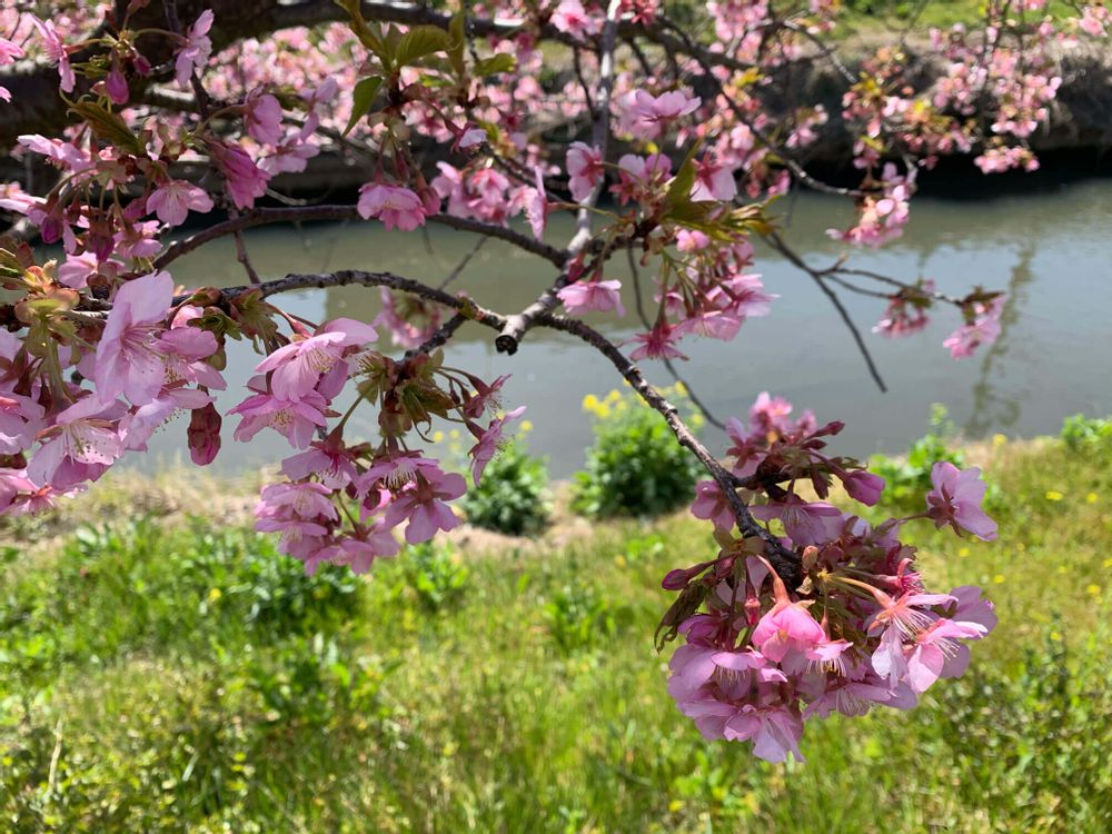 淀水路沿いにカワヅザクラがまとまって植えられているため開花するととてもきれいです。菜の花も植えられているので、黄色とピンクのコントラストも楽しむことができます。