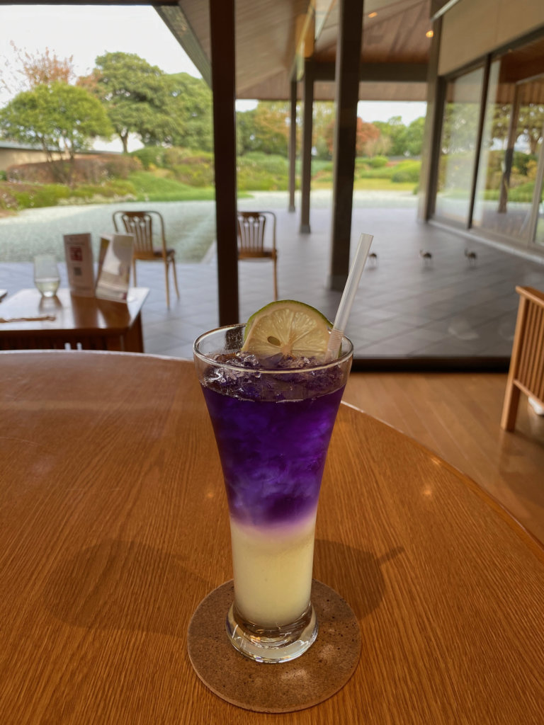先日美術館へ立ち寄った時にいただいたのが、ハーブのバタフライピーのレモンスカッシュ。「平山ブルー」と呼ばれる深い青の色は、平和への願いを込めて。
