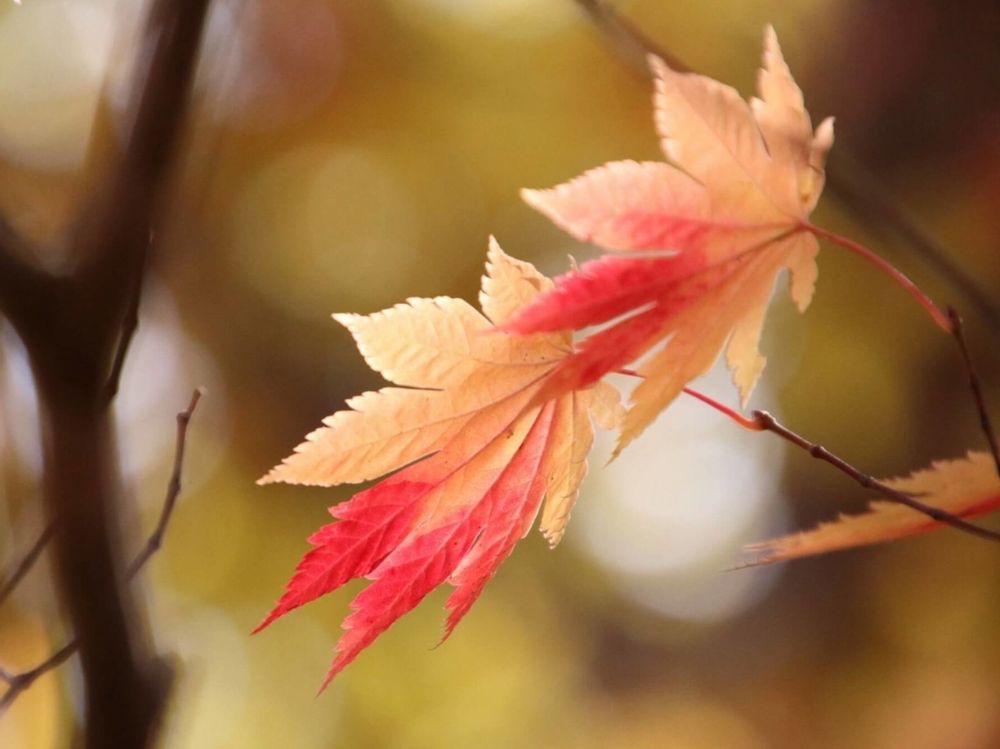 秋になると、葉の先から少しずつ色が変わり始め、黄色、オレンジ、赤色と、変化していく美しいグラデーションを味わうことができます。