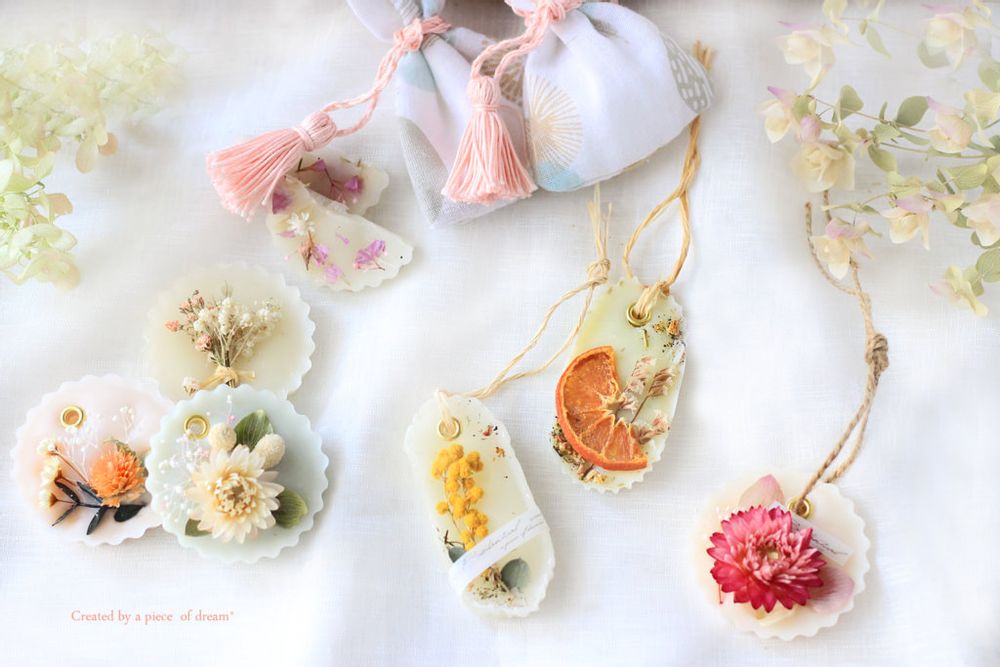 サシェやアロマワックスサシェは手軽につくれて、香り良い癒しの空間をつくることができるので、香りのギフトとしても楽しめます。