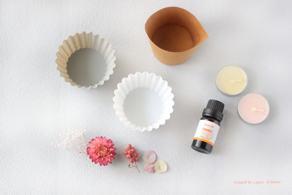 キャンドル用のワックス(ロウ)にお好みの香りをつけ、固めるだけなのでハンドメイドとしても近年人気の高いアイテムです。