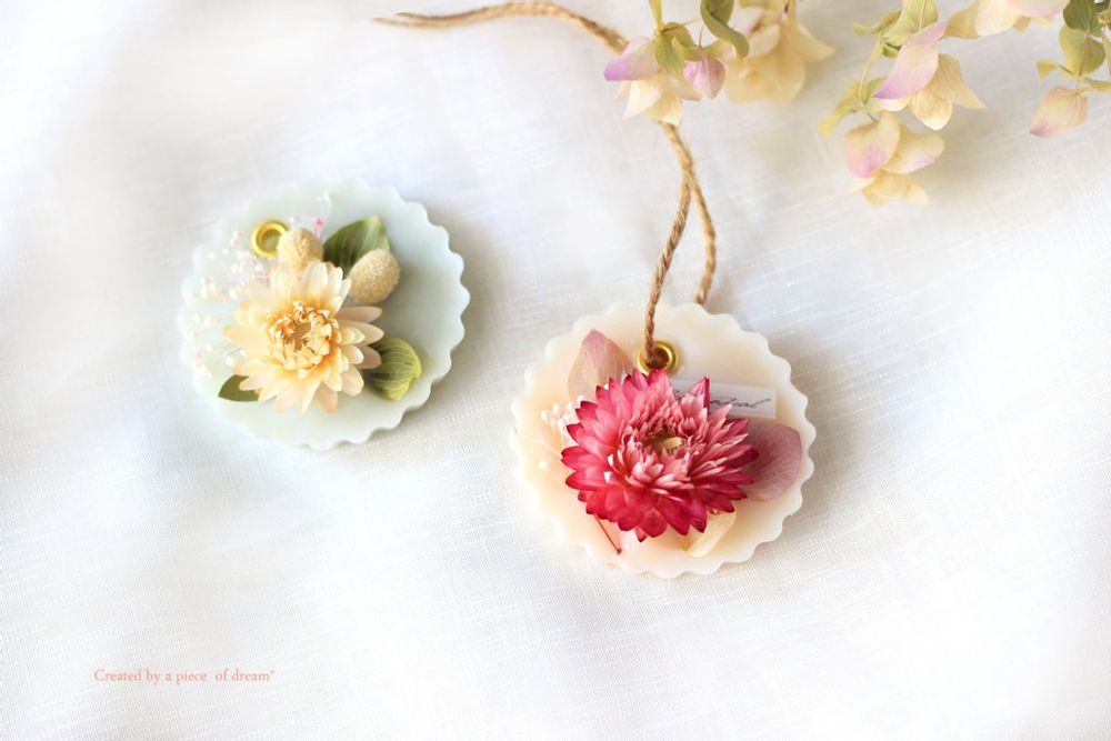 ドライフラワーやドライフルーツ、ハーブなどを合わせてアレンジできるので、見た目がかわいく、置いておくだけで癒され、ほんのり優しく香ります。