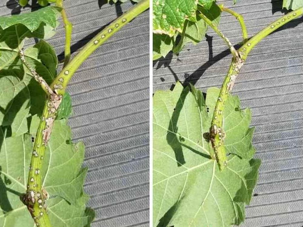黒とう病とは、ブドウの葉っぱや茎、果実に茶色や黒色の小さな円形の小斑点が発生するカビが原因の
