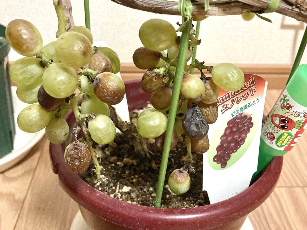 こうなるとブドウの収穫量にも影響が出るので、見つけ次第、発症部分は取り除いておきます。梅雨などの湿気が多い時期に発症しやすくなるため、これらの時期には雨よけ対策をしておくと良いでしょう。
