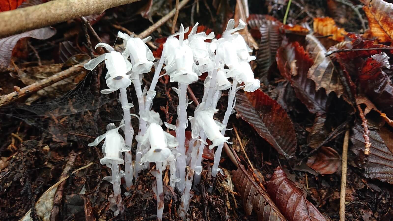 しかしギンリョウソウの株は根以外すべて真っ白です。一般にイメージされるであろう植物の緑は欠片も存在しないため、一見きのこのようにも見えてしまいます。