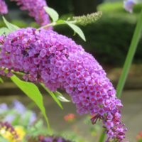 ブッドレアはフサフジウツギの園芸品種名で、紫色の小さな花が穂状に集まったような花を咲かせま...…