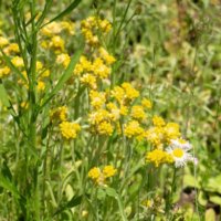 畑や田んぼの道端で、すっと伸びた茎の先に小さく黄色い球が集まったように咲くハハコグサを見た...…