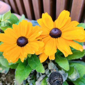 おはようございます😊❣️ ルドベキア最後の一輪かな❣️ 咲いてくれました❤️ ネメシアと春に咲いたアネモネを 鉢のまま置いてて、芽吹いてくれました🤗✨ また可愛いお花が見れそうですね🥰💕