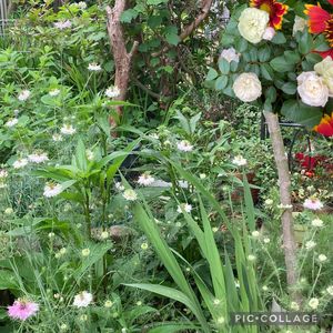 少しひんやり エキナセアの花壇です ニゲラが沢山支えてくれます グリーンアイスも