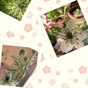 とっても素敵にニゲラの お花が咲いて来ました🌸🍀🌸 お花の上で小人さんが 踊ってる〜〜*・゜゚・*:..。♡〜〜