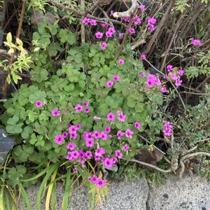 ピンク色のお花がたくさん咲いていました😊 ハナカタバミ。 ✖️フヨウカタバミ。 カタバミ科カタバミ属のお花。 3、4センチくらいの大きなお花だったので、カタバミよりはオキザリスと呼びたくなります。ピンクの花色が素敵ですね🤗 ちょっと調べ直したら、ハナカタバミの方が近いかなと。修正しますね。