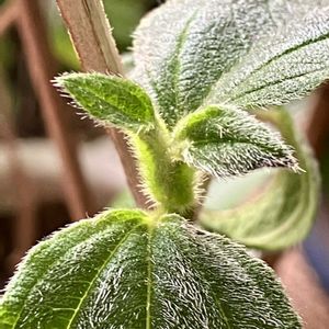 シコンノボタン&カタバミ 鉢上げして越冬中のシコンノボタンに 新たな葉が茂り出しました🌱🌿✨ 剪定後に葉が落ちていたので🍂 新緑を喜んでいたら🌱🌿✨ 根元には…カタバミの葉が❣️☘️✨ 外は既に零下で🧊❄️⛄️ 凍った雪に覆われているので 雑草と言えども嬉しいのです❣️😆♫ それにしても…毛深いのね!🤭💓
