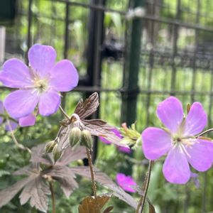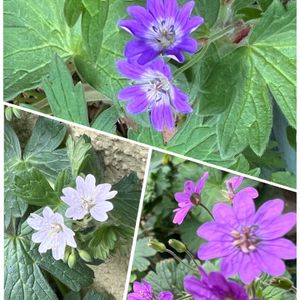 ゲラニウムさんたち ①②メイフラワー 小さい花 アーリーセンセーションとの比較 すっきりした綺麗な花です ③ツベロサム 風でぶれてます 球根フウロソウ ④サマースノー⑤ビルウォーリス こぼれたねからの開花、私の蒔いた苗はまだ咲きません😅