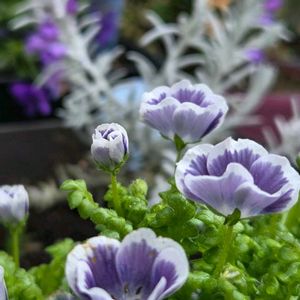 こんばんは~😃🌃 💜ネモフィラ🤍 ブルーベリーアイズ💜 🤍💜エレモフィラ💜🤍 🤍💜芝桜💜🤍 💜ムスカリ💜 ディモルフォセカ💛パステリーナ🤍 💜ビオラ💛