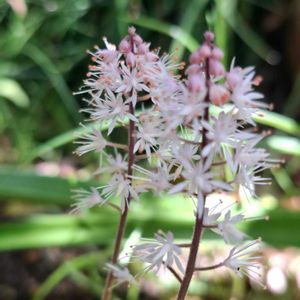 ティアレラが咲きました😊 かわいらしいコです🤍 アジュガものびのび咲いてます💜 ブラックエミュー勢いがあります🖤 エレモフィラ シルバーリーフと 優しいムラサキがとってもすてき🩶💜 🌷アイスクリーム かわいすぎる😍