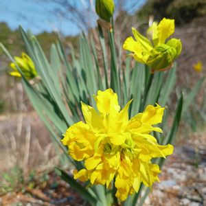 今日のお花 スイセン 今年3月に出会ったスイセンたちです。 1⃣ 八重咲きスイセン変わり咲き 2⃣ ラッパスイセン 3⃣ 桜とスイセン 遠くに見えるのは甲斐駒ヶ岳 4⃣ ラッパスイセンとワニ塚の桜とムラサキハナナ 5⃣ 梅とスイセン 山の公園