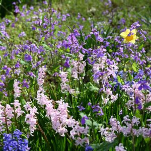 いつもありがとうございます😊 今日のお花『ヒヤシンス』𓂃𓂂ꕤ*.゚ ヒヤシンスとムラサキハナナ、スイセンのお花畑がとても可愛いかったです。:°ஐ..♡*