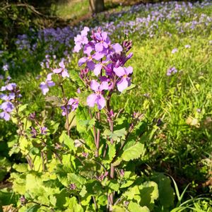 ムラサキハナナ見ました🟣 群生していたので紫の絨毯なようでした オオアラセイトウ、ショカツサイともいわれる アブラナ科で大根の花にそっくり 食用にもなるみたい