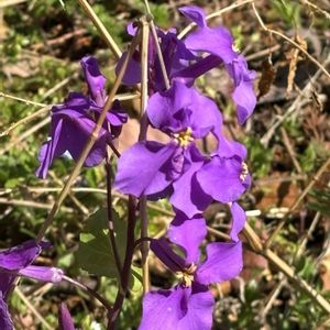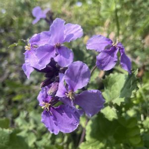 ムラサキハナナ見ました🟣 群生していたので紫の絨毯なようでした オオアラセイトウ、ショカツサイともいわれる アブラナ科で大根の花にそっくり 食用にもなるみたい