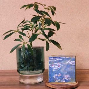 半水耕栽培のシェフレラ「ムーンドロップ」🪴 ガルニエのチョコ缶のモネの絵に合わせて、グラスを着せ替えてみました。 普段は一つ前の投稿のブラウンのグラスにしていましたが、モネにはこのグリーンが合いそうです。 シェフレラは、昨年に無印良品の売り場でカビて葉も黒くなっていているのを見かけ救出してきた子です。 可哀想な株を見ると、買う気もないのにレジに向かっているという植物あるあるです笑 植え替えから数ヶ月経ち、今は綺麗な新芽を見せてくれています。 ▶StandardProductsのグラスはブログ(2026.2.11記事)に綴っています。プロフィールリンクから飛べます。 シェフレラ自体は現在ほかの株と用土の比較実験をしていて、まだブログに記録していません。 ブログ更新はXなどのSNSでお知らせしています。