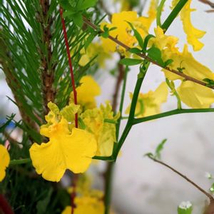 今日のお花💛オンシジウム💛と温室のお花 1️⃣オンシジウム (202412月) 東南アジアの民族衣装を着た踊り子さんに見えちゃいます 2️⃣カトレア 3️⃣ウスギコンロンカ 4️⃣リジディス.ロドステニア 東南アジアの東部地域に自生するマメ科の木で、南アジア東アフリカなどに導入 夏に白や紫色の花を咲かせる 古代中国では皇帝に献上した花で、「皇帝の花」と呼ばれた 日本でも庭園や特別な行事で使用されたようです 紫の花は枯れたものしか咲いてなかったです 今はお豆のさやができているようです Google先生にも分からない花が、最近ネットのブログに載っていたので、名前が判明しました 夏の紫の高貴なお花が載っていましたので、ご参考にして下さい 2️⃣3️⃣4️⃣2025.10/20