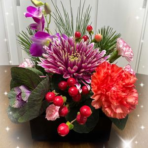 こんにちは☁️🥶 午前中に "お正月のフラワーアレンジ" 参加して来ました🌸💕 気分はすっかりお正月🎍 現実はまだお料理の買い出しすら出来てないんですけど…💦