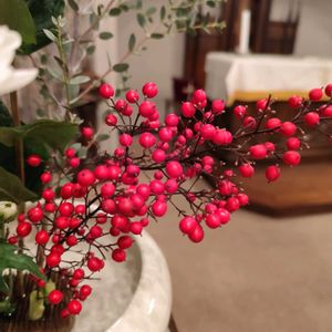 赤い実と緑のヒペリカムで一応クリスマス?