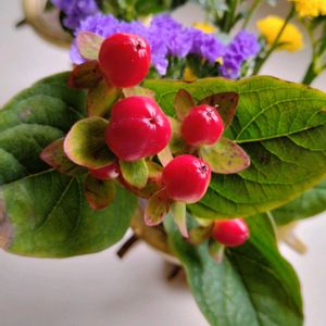 ♡ ヒペリカム ♡ 切り花でとっても華やかな❣️❣️ 沢山の赤い実が可愛らしい⸜❤️⸝ お店の入口に飾って有りました❤️ᩚ お正月に向けて縁起が良さそう🎍🌅 今年1年ありがとうございました🙏♦️ 来年も宜しくお願いします🙏🏻💙