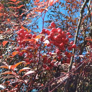 おはようございます😊 ①~③ 散歩道の南天は青空がお似合いです❣️ ④ カネノナルキ😆(散歩道)💮 ⑤ 我が家の素敵なデンドロビウム😉 🏷 真っ赤な火曜日😌 参加させて下さい😊