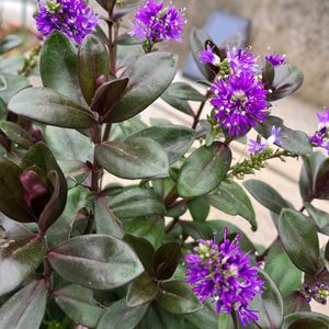 ラベンダー色のこの穂状のお花は ベロニカ グレースです。 花の形からセイヨウトラノオ(西洋虎の尾)とかルリトラノオ(瑠璃虎の尾)などとも呼ばれます。 葉っぱは ツヤツヤで寒さに当たるとチョコレート色に色づきます。 冬に葉っぱが落ちて 地上部が枯れても 春にまた芽吹き花を咲かせる多年草です。🤗✨ ニュージーランド原産。 ゴマノハグサ科ベロニカ属の多年草。