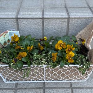 桐生ファーム ビオラタイガーアイ ビオラとベロニカを使って簡単な寄せ植えを作りました 本当は白いブリキ鉢に植えたかったけど 気に入ったブリキ鉢に出会えず この白いバスケットに植え付ける事に 選んだお花は黄色と言うより やまぶき色の花びらに黒の模様の入ったビオラとベロニカ 花びらの裏側が紫色をしてます 上手く育ちますように💛🖤