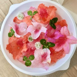 こんにちは🌞 最近すっかり春…超えて夏のようなあたたかさになってきましたね。 近所でもツツジが満開で、香りが良く見目も鮮やかで癒されております。そんなツツジ、綺麗な状態でポトリと落ちているものが沢山あったので、拾ってきてフラワーボウルにしてみました。とってもキレイ💕色味がなんだかイチゴのかき氷のような、薄切りのお肉のような気もしますが、こうして落ちた花でも楽しめるのは良いことですね🎶 ベランダのアイビーは更にモリモリと成長しており、アジサイも梅雨時期に向けてすくすくと!レモンの木は、新しい葉がたくさん出ておりました🍋嬉しいな〜。プチ家庭菜園の二十日大根とパセリも育っていて順調です。毎日水やりの時に成長を楽しめるのが植物の素晴らしいところだなあと毎度ながらに感動します。
